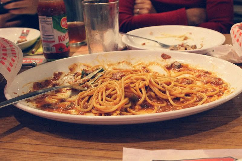 not the most awesomesauce spaghetti out there but i like it that it's simple, and not too overwhelming to eat with the pizza!