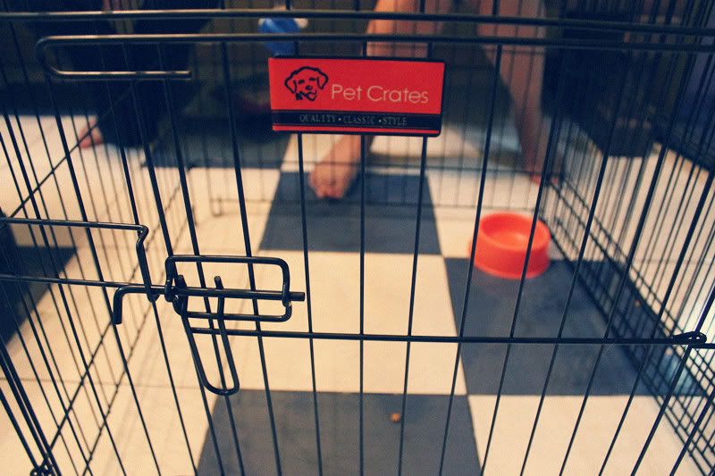This is his new petcage from pet crates, it even has a door ^^ since he's still a curious pup, can't let him run around the house just yet.